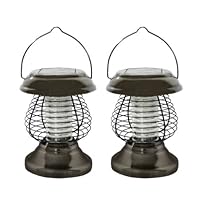 Go green and start enjoying your outdoor patio again! With flexible installation options the Westinghouse Solar Powered Bug Whacker is a decorative addition to any outdoor space. It's perfect for camping trips too. Switch between a high powered White LED for increased visibility in dark spaces and insect attracting purple UV light with up 1000 square feet of coverage. No more nasty bug sprays with environmentally harmful chemicals. The outer safety cage keeps children pets and wildlife safe. The sturdy stainless steel construction features an attractive antique pewter finish that will look great while keeping your yard free of disease carrying mosquitoes and other pests. Certified effective by Black Flag Pest Control Labs a national leader in pest control since 1833. With replaceable Ni-Cd batteries and bulb lives of 10000 hours this set of two Westinghouse Bug Wackers will be saving you money and keeping your yard or patio bug free for years to come. 2 Lanterns per box.